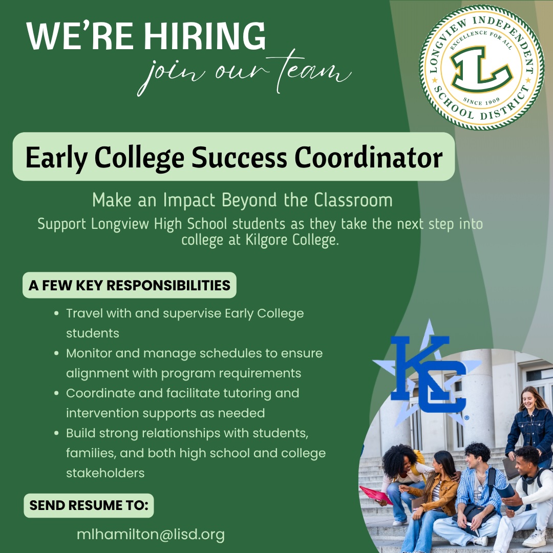 We’re looking for a dedicated Early College Success Coordinator in Longview ISD to support students earning college credit while still in high school.